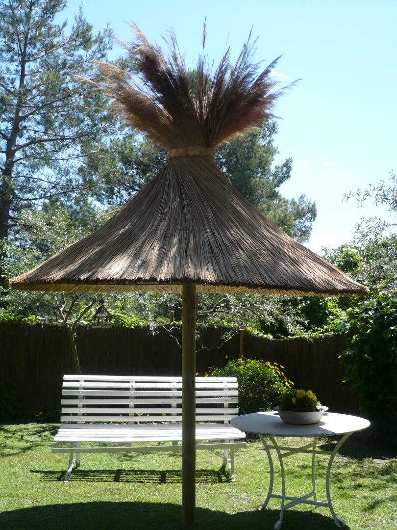 Nos parasols sont fait à la main, poignée par poignée, accordés par du fil de fer sur une structure en métal respectant les techniques de fabrication ancestrales.